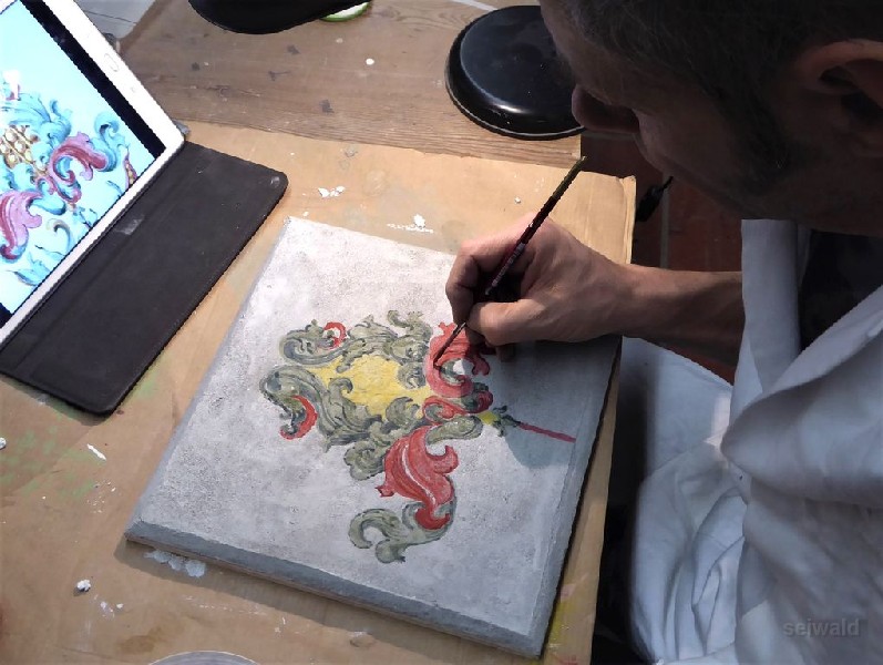3 Fresko, Durchpausen des Ornaments, 2017 |